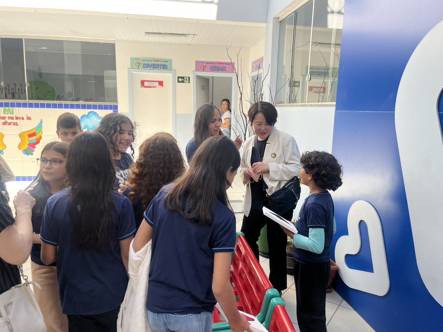 小柳理事長 就任後初めてブラジルへ 2025.10.06 今年8月、理事長の小柳宗風が、就任後初めて竹風会ブラジル本部へ訪問しました。 日本の裏側、そして南半球にあるブラジルは真冬!ダウンジャケットを着るほどの寒さに、改めて地理的な距離を感じます。 訪伯中には、竹風会が文化の授業を担当する学校に訪問し、たくさんの子供達との交流がありました。 ブラジルの生徒はとにかく積極的です。聞きたいことを次々に質問してきます。 日本の学校ではどんな勉強をしているのか等の質問がありました。 「日本で今流行っている漫画は何ですか?」という質問も。やはり日本といえばアニメ・漫画のイメージです。 また日本では生徒がみんなで教室を掃除することや、ひとつのランドセルを6年間使うことに、とても驚いていたそうです。 ブラジル竹風会の52周年を記念した行事も行われ、たくさんの人がお祝いに訪れました。 理事長のスピーチの後、許状授与式や、ブラジル本部の井上草風先生への感謝状授与が行われました。 ステージ上では日本人会の皆さんによる踊りや太鼓が披露され、竹風会の歴史を振り返る映像の上映などもありました。 ブラジル本部から800km以上離れたサンパウロ州サントスにも訪れました。 ここは1908年に日本からの初めての移民船「笠戸丸」が到着した土地です。 コーヒー農場の契約労働者として781人が日本から遠く離れたブラジルへ渡り、過酷な労働の中でも自分たちの文化を守りながら生きていきました。 それから100年以上が経ち、現在ではブラジルにも日系社会が根付き、「日本ブラジル友好交流130年」を迎えた今日も日伯の交流が活発に続いています。 サンパウロ州 リベルダージ(日本人街) サンパウロ州サントス コーヒー博物館にて サンパウロ州 サントスの町並み コーヒー博物館(元:珈琲取引所) かつては珈琲の取引が行われていた場所。毎日この広間で珈琲の値段を決めていた。 文化でつなぐ友好展~創立55年プレ作品展~ 新着記事 お知らせ一覧 2024.12.13 文化でつなぐ友好展~創立55年プレ作品展~ 2024.10.11 今年もきれいに咲きました! 2024.06.01 Instagram オープン! 2024.06.01 コスモスの種まき