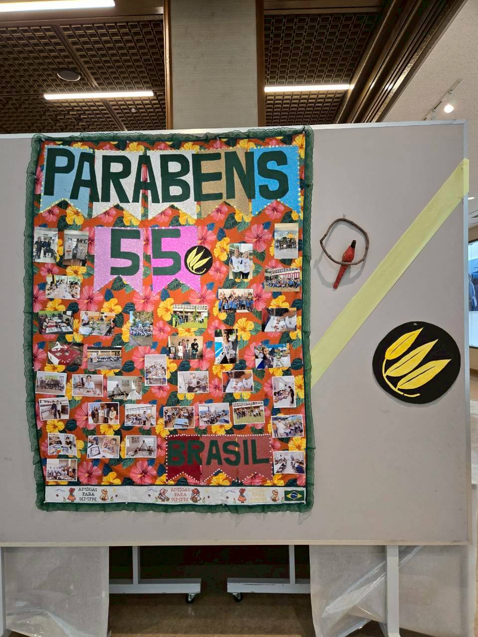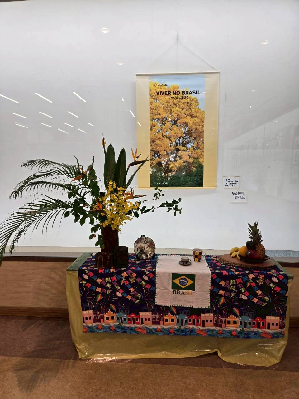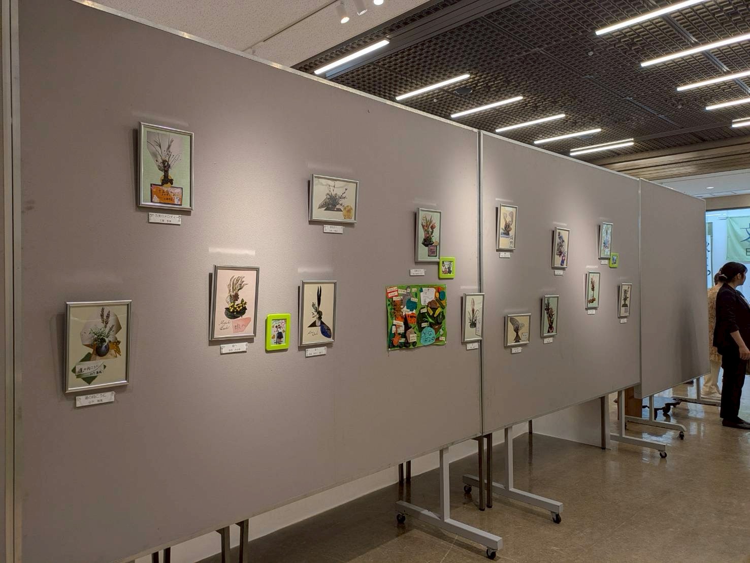 会場では、3歳から大人までの幅広い年齢の生け花作品や、書道作品、ブラジルとの友好活動の記録、大阪支部からの写真参加作品など、様々な展示をご覧いただきました。竹風会の生け花にはそれぞれ「テーマ」と「席札」があり、自由な発想で取り組んでいます。